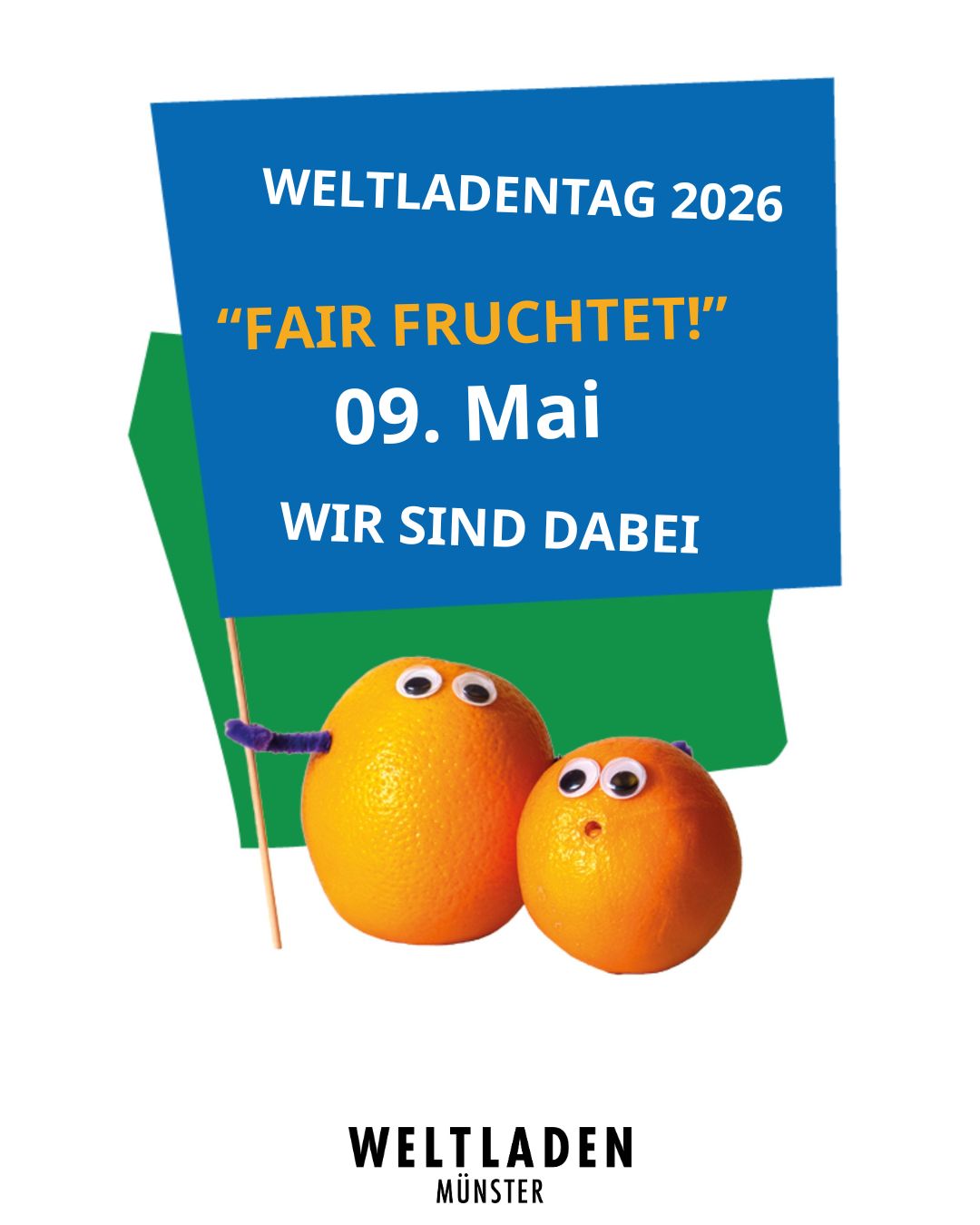 Wir, der Weltladen Münster werden uns mit kleineren und größeren Aktionen beteiligen. Seit Jahren beziehen wir Obst aus dem Fairen Handel. Angefangen mit unseren Bananen von banafair gibt es mittlerweile in den Winter- und Frühlingsmonaten faire Orangen, Zitronen, Avocados, Bergamotten und Grapefruits u.a. von SOS Rosarno bei uns zu bestellen.