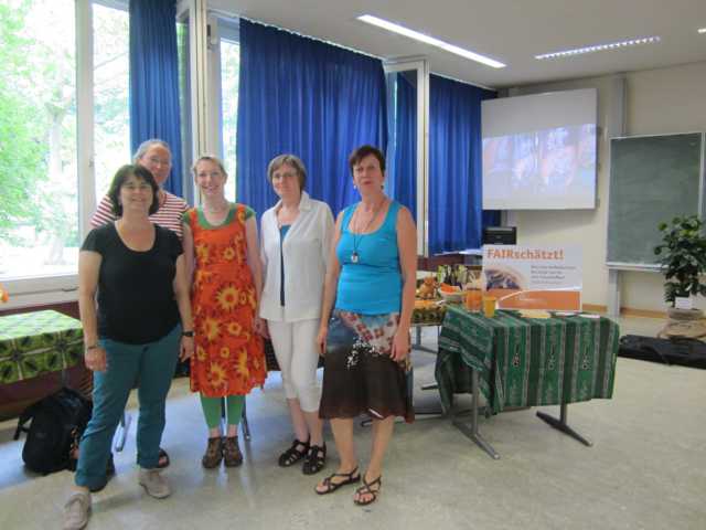 Mit viel Engagement fand sich eine kleine Orga-Truppe aus beiden Weltläden zusammen, die mittels eines bunten, vielfältigen Standes den Besuchern einen Einblick in die Welt des Fairen Handels gab. Und ihnen wurde einiges geboten: kleine Köstlichkeiten aus Quinoa, süße und leckere Küchlein und die Chance auf einen selbstgemahlenen, frischen Kaffee. Dazu konnten sich die Gäste an einem Kaffeeparcous über die Ernte und Herstellung von Kaffee informieren. Mit Hilfe einer Schätzaktion wurde ermittelt, wieviele Bohnen es benötigt, um eine Tasse Kaffee zuzubereiten. Herzlichem Glückwunsch dem Sieger des kleinen Präsentkorbs.