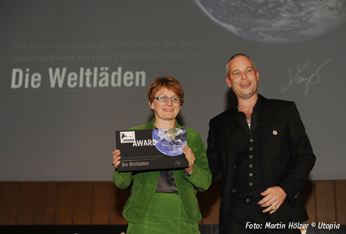 Der Utopia Award zeichnet Vordenker und Macher des gesellschaftlichen Wandels aus und prämiert besondere Ideen und Innovationen, die wegweisend für eine nachhaltigere Zukunft sind. Die Weltläden erhielten den Preis für ihr unternehmerisches Engagement im Fairen Handel. Inzwischen arbeiten über 800 Weltläden mit wirtschaftlich und politisch benachteiligten Produzenten vornehmlich in den Regionen Asiens, Afrikas und Lateinamerikas zusammen und leisten so aktiv einen Beitrag, um die Regeln und Praktiken des konventionellen Handels zu verändern. Den Preis hat stellvertretend für die Weltläden Silke Mählenhoff (Bild), Vorstandsmitglied des Weltladen-Dachverbandes, in Berlin entgegen genommen. Mehr Informationen unter http://www.utopia.de