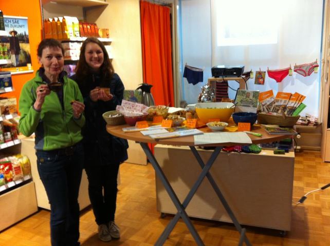 Unter dem Motto "Kleinbauern säen unsere Zukunft" haben wir einen Einblick in unsere Arbeit gegeben, mittels einer Postkartenaktion versucht Transparenz zwischen Kunden und Produzenten zu schaffen und an einem bunten Probierbuffet aufgezeigt, wie lecker und gut Lebensmittel aus dem Fairen Handel schmecken.